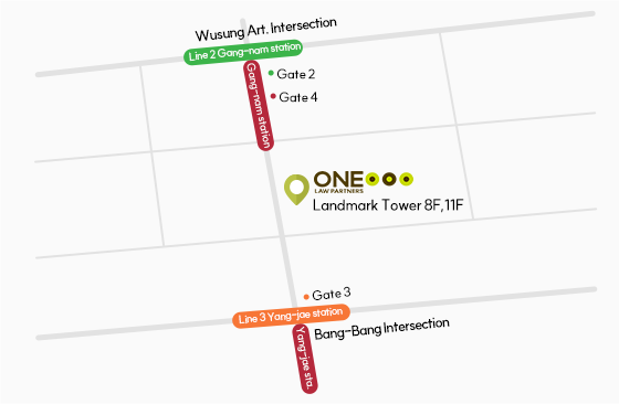 2If you are using No. 2 Green Line, please stop at the Gangnam Station and use Exit No. 2 to leave the station. Please continue walking towards Baeng Baeng Sa-Geori for approximately 600 meters and our building will be to your left.