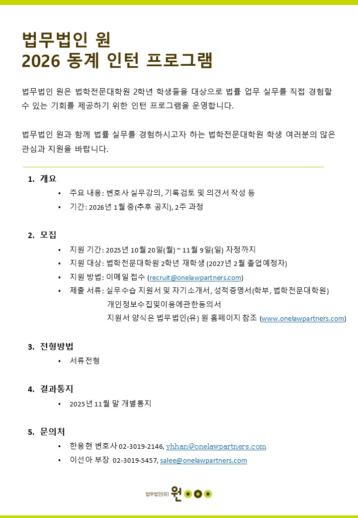 [공고] 법무법인 원 2026 동계 인턴 프로그램