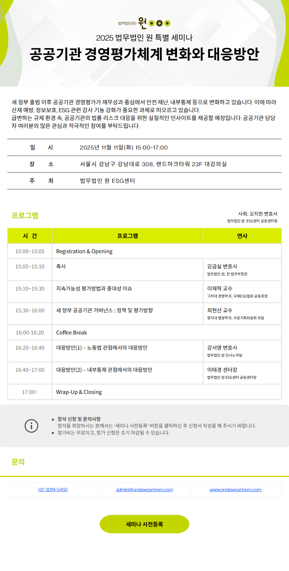 [법무법인 원 특별세미나] 공공기관 경영평가체계 변화와 대응방안